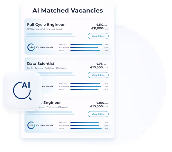 Find the best vacancies instantly with our AI Matching Search based on your profile or search prompt.