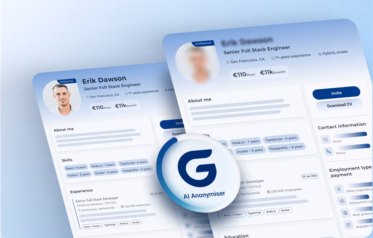 Skills-based, bias-free hiring through anonymization technology.